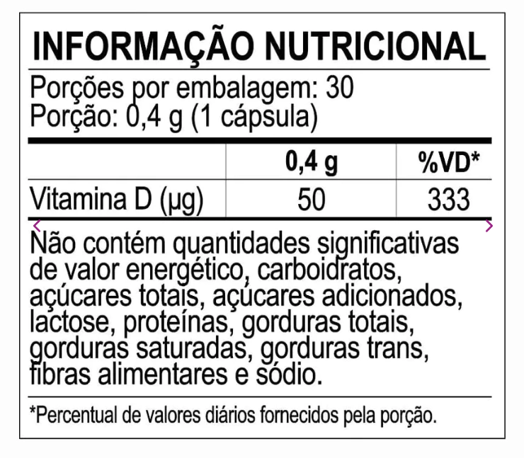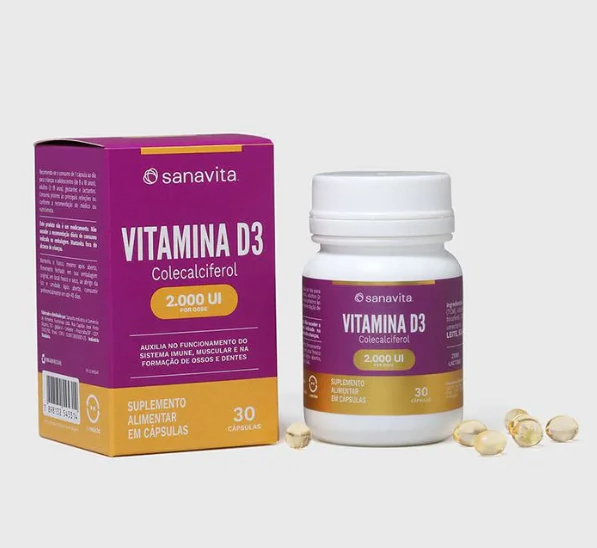 A Vitamina D3 da Sanavita fornece 2.000 UI (50µg) de colecalciferol por cápsula, uma forma altamente eficaz de vitamina D.